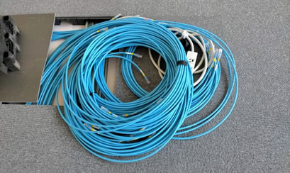 100m以上の距離や、工場電波による高いノイズ発生に対する光ファイバーケーブル施工も対応しております。